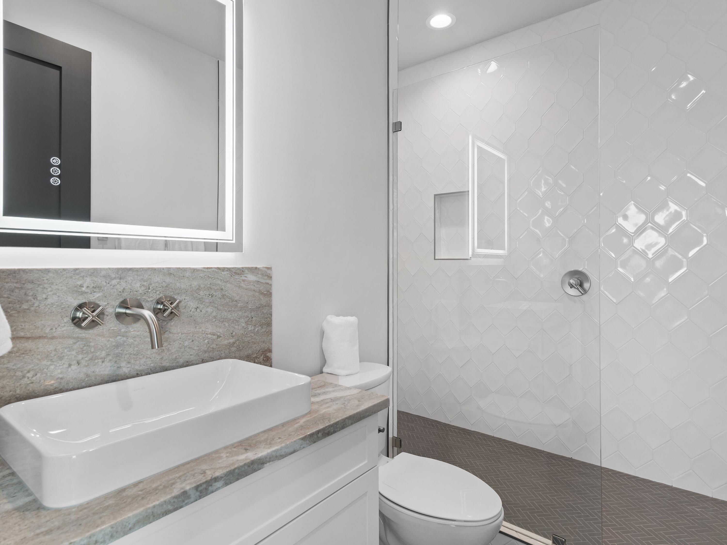 Built to exceed expectations, the home incorporates advanced systems like Gold Bond waterproof sheathing, Schluter bathroom waterproofing, concrete band headers, and an individual fire suppression system combining peace of mind with enduring value.
